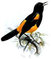 Turpial (Icterus icterus): Fue declarado Ave Nacional el 23 de mayo de 1958. Se reconoce por sus colores amarillo-naranja en todo el cuerpo, excepto la cabeza y las alas que son negras con partes blancas y tiene una mancha azul pequeña pero intensa alrededor de los ojos. Vive en solitario o en parejas en lugares cálidos, como los llanos, cardonales, matorrales espinosos, bosques deciduos (que pierden las hojas) y bosques de galería (en los márgenes de los ríos). |